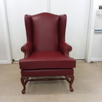Project Details Project: Reupholstery Category: Furniture Upholstery Our Task Completely reupholstery wingback chair with Burgundy leather and nail trim. Similar Projects Stressless consul recliner & ottoman. Antique chair Antique Chair with Nail…